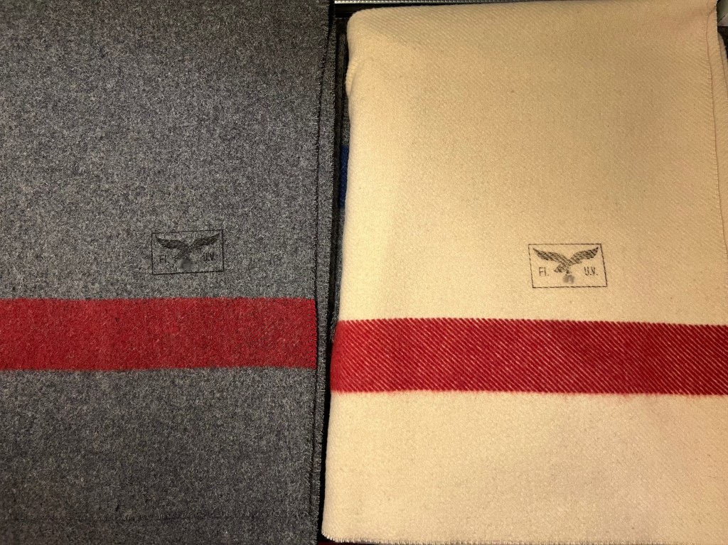 100% wool weighs approximately 4 lbs, which is how much the original weighs. They’re available in two colors: creamy white and grey. And there are also two options for stamps: Heer and Luftwaffe. Price: Grey $75, White $90