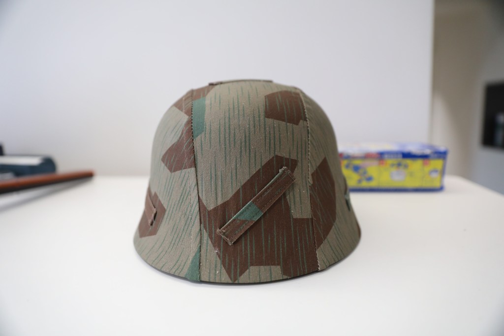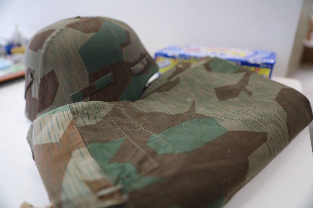Printed on white cotton twill. The pattern and color are based on my 1942-dated original Splinter Zeltbahn.